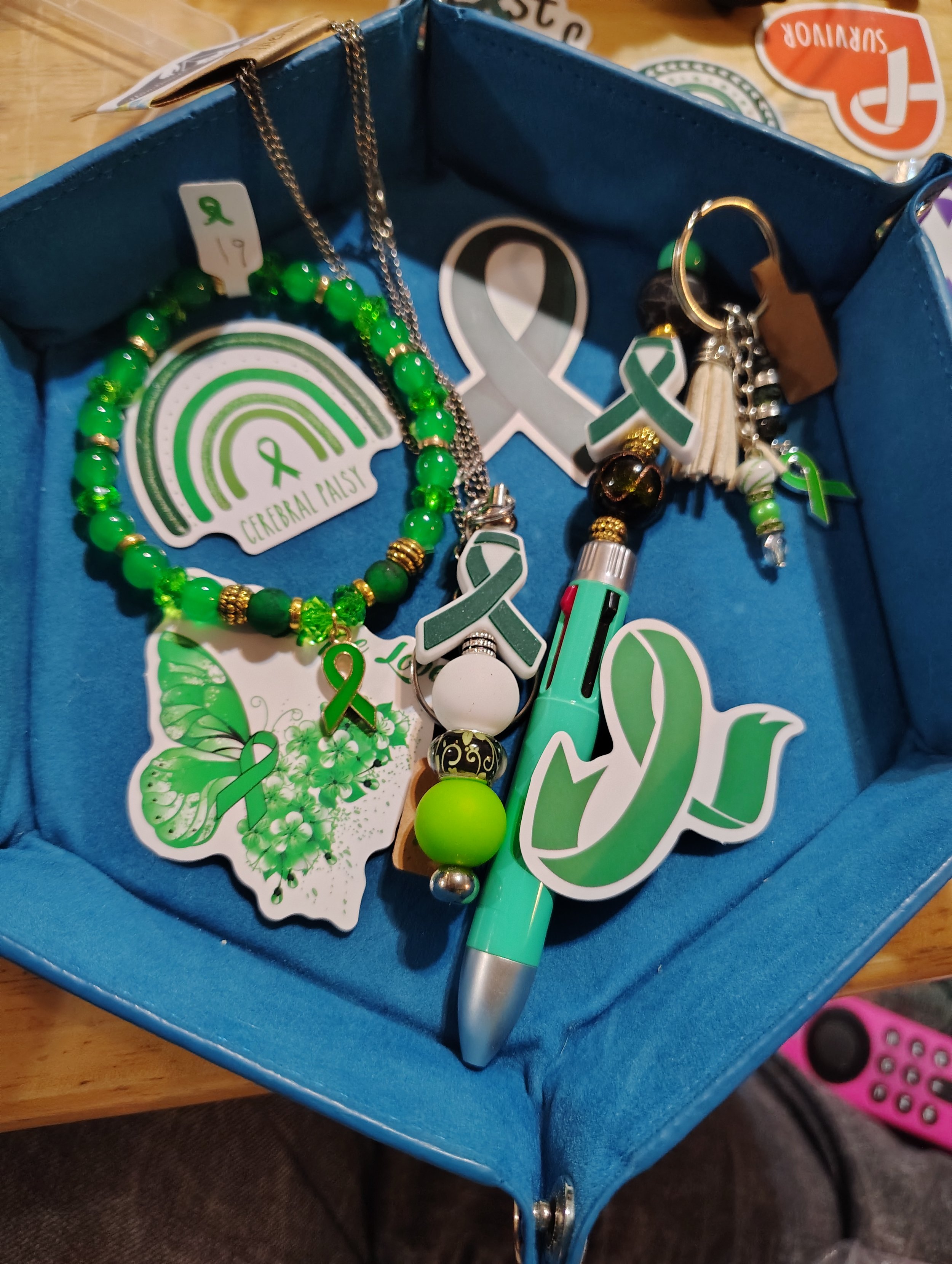 Cerebral Palsy Categories: All Causes Autism Breast Cancer Awareness Cancer Conditions Alzheimer's and Dementia Ankylosing Spondylosis Cerebral Palsy Chiari Malformation Crohn's Disease Deaf/Hard of Hearing Diabetes Down Syndrome Ehlers-Danlos Syndrome Endometrioses Epilepsy HiV/AIDs Lupus Meniere's Disease Multiple Sclerosis P.O.T.S. Zebras Other Earth Day Fidget Clickers Mental Health ADHD Anxiety OCD PTSD Suicide Prevention Therapy Other Pregnancy and Infant Loss Other Adoption Donate Missing Children Stop Bullying Stop Domestic Violence Sticker Packs Art From The Heart Just for Fandom Fun Bracelet Ornaments Keychains All / Causes / Conditions / Cerebral Palsy Cerebral Palsy Awareness Set $12.00