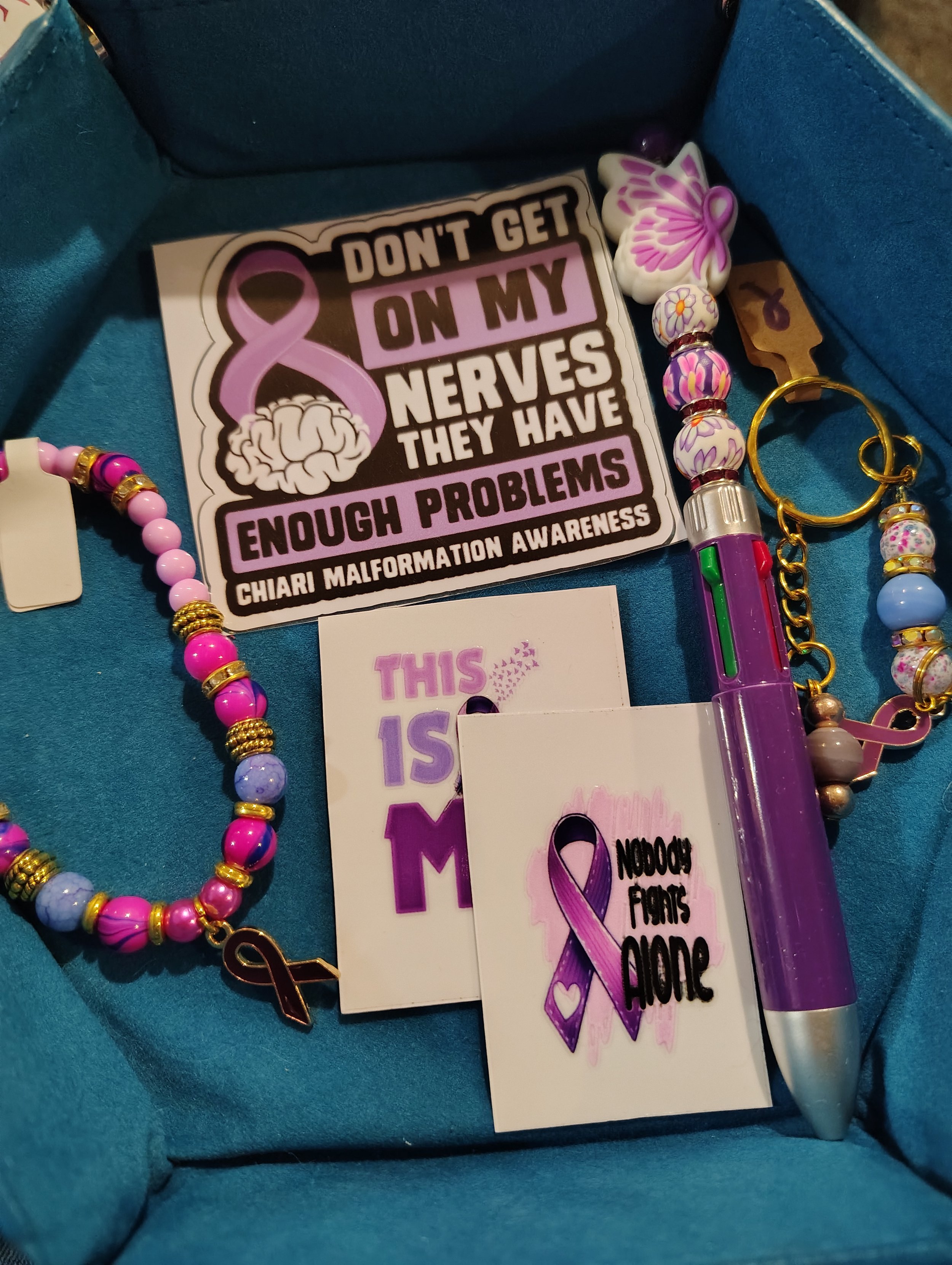 Chiari Malformation Categories: All Causes Autism Breast Cancer Awareness Cancer Conditions Alzheimer's and Dementia Ankylosing Spondylosis Cerebral Palsy Chiari Malformation Crohn's Disease Deaf/Hard of Hearing Diabetes Down Syndrome Ehlers-Danlos Syndrome Endometrioses Epilepsy HiV/AIDs Lupus Meniere's Disease Multiple Sclerosis P.O.T.S. Zebras Other Earth Day Fidget Clickers Mental Health ADHD Anxiety OCD PTSD Suicide Prevention Therapy Other Pregnancy and Infant Loss Other Adoption Donate Missing Children Stop Bullying Stop Domestic Violence Sticker Packs Art From The Heart Just for Fandom Fun Bracelet Ornaments Keychains All / Causes / Conditions / Chiari Malformation Chiari Malformation Awareness Duo $10.00