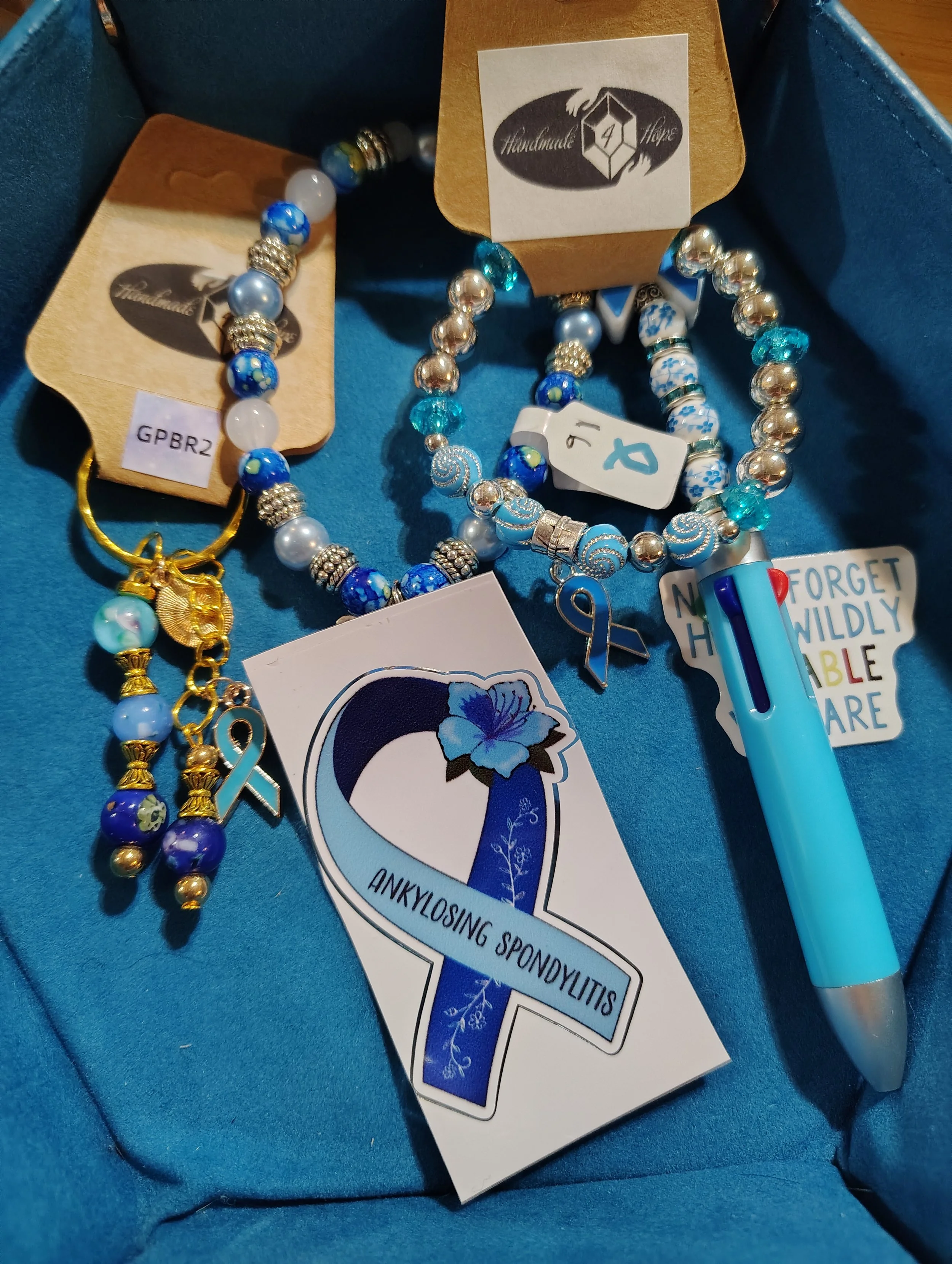 Raise awareness and show your support with the Ankylosing Spondylosis Awareness Set. Designed to educate and inspire, this set includes carefully crafted items that promote understanding of this chronic inflammatory disease affecting the spine. Each piece serves as a conversation starter, helping to spread knowledge and empathy for those living with Ankylosing Spondylosis. Whether you’re a patient, a Warrior, caregiver, or advocate, this set is a meaningful way to unite the community and drive awareness forward. Support the cause and make a difference today with the Ankylosing Spondylosis Awareness Set.