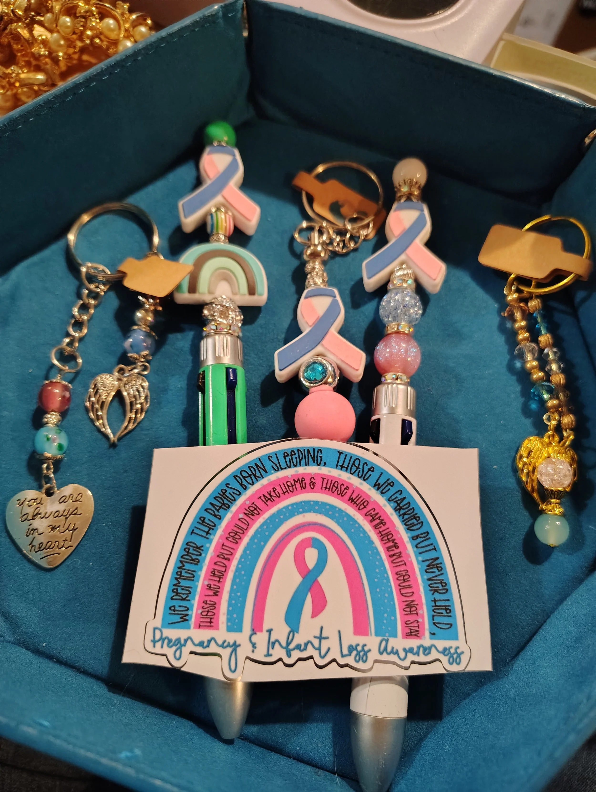 Discover comfort and remembrance with our Pregnancy and Infant Loss Awareness Set. Thoughtfully crafted to honor and support those experiencing this profound loss, each piece serves as a meaningful symbol of hope and healing. This carefully curated collection features delicate items designed to provide solace and keep cherished memories close. Whether for yourself or as a compassionate gift, this set offers a gentle reminder that you are not alone. Embrace peace and remembrance with a set created to uplift hearts and raise awareness during difficult times.