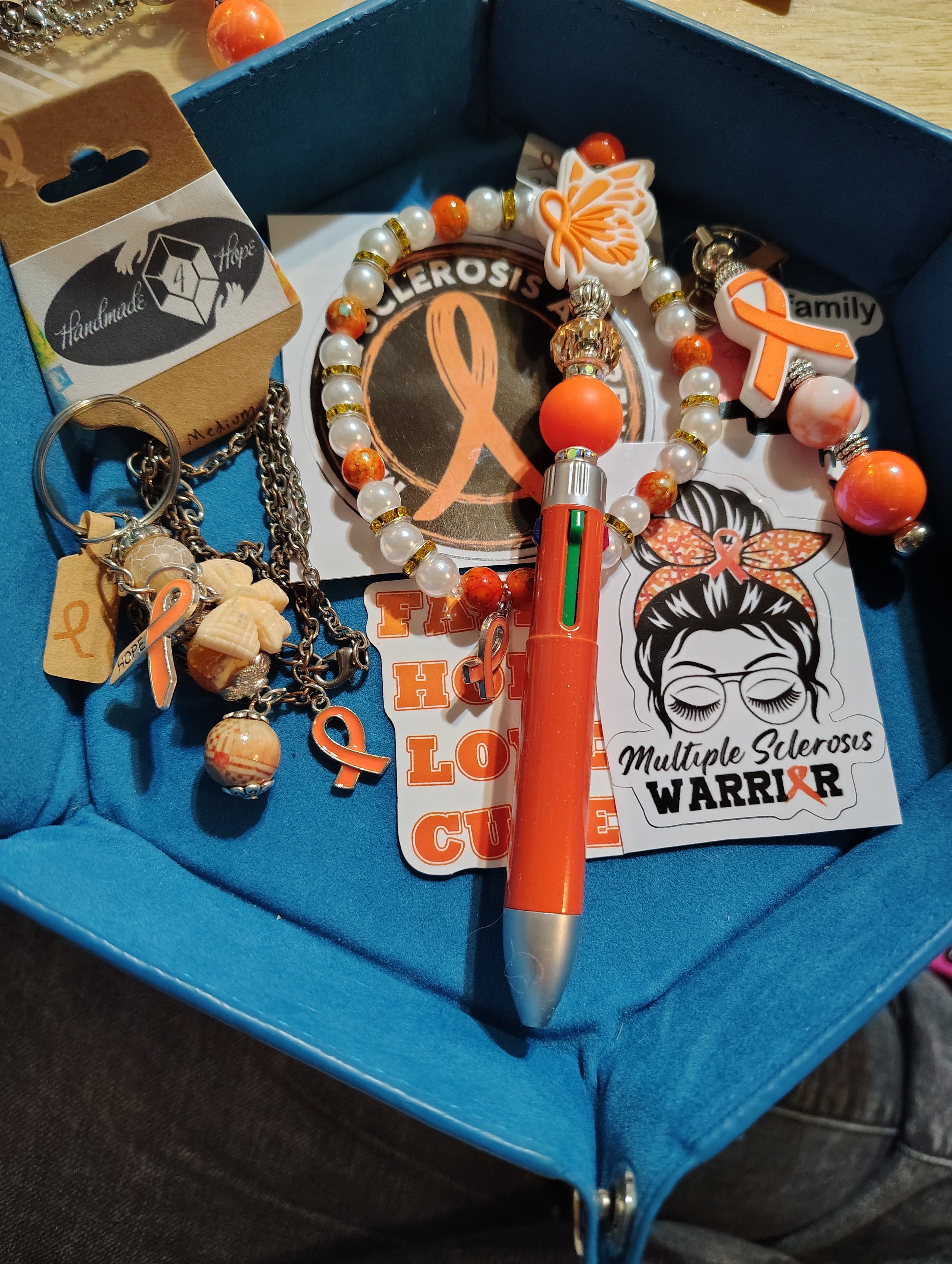 Show your support and raise awareness with our Multiple Sclerosis Awareness Set featuring a beautifully crafted bracelet. This set is designed to inspire hope and solidarity for those affected by MS. The bracelet, adorned with symbolic colors and charms, serves as a daily reminder of strength and resilience. Made with high-quality materials, it offers both comfort and lasting durability. Perfect for yourself or as a meaningful gift, this set helps spread awareness and fosters a community of encouragement. Wear it proudly and join the movement to bring attention to Multiple Sclerosis.